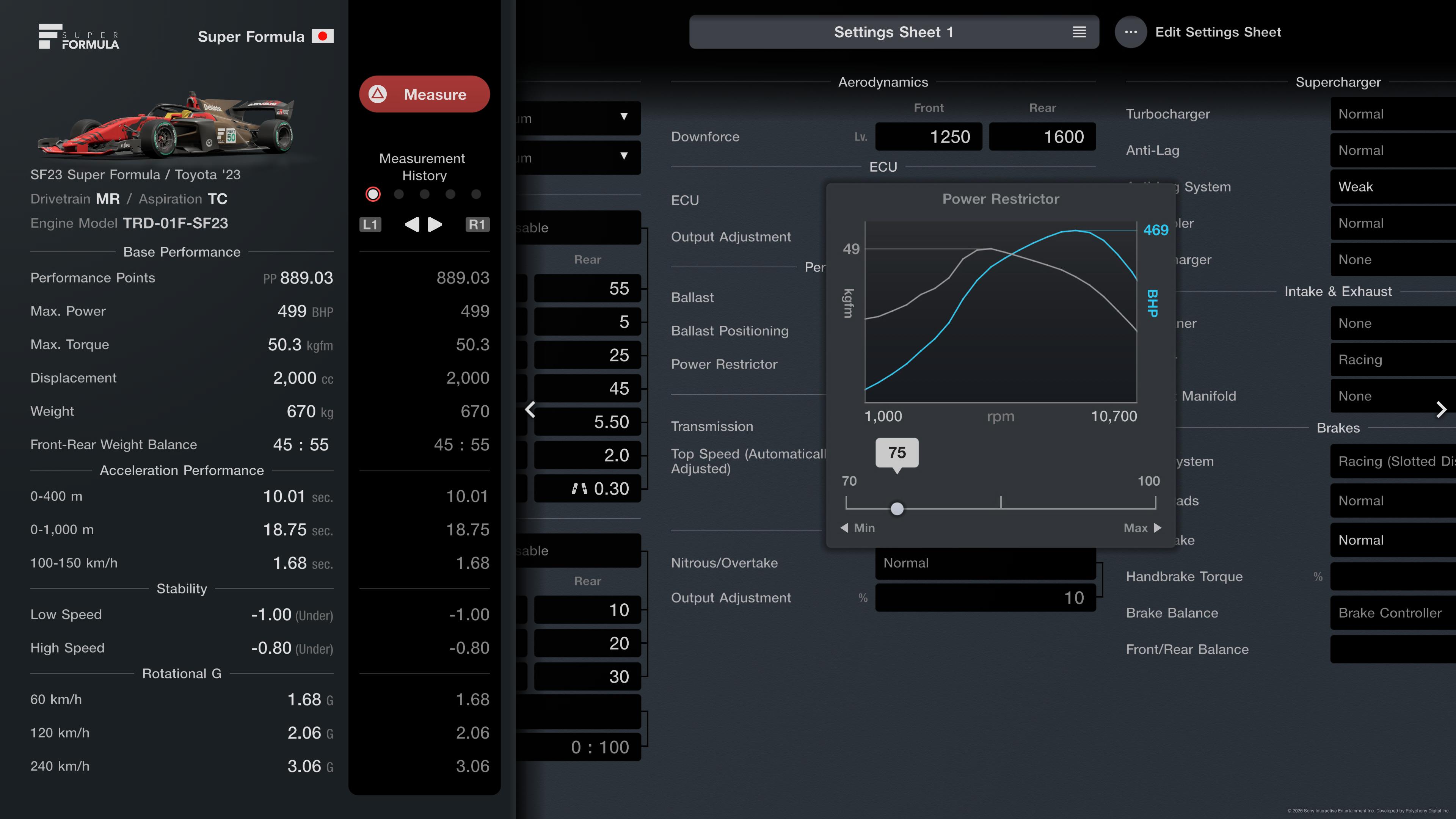 Максимальне значення PP: 890, що відповідає Super Formula SF23 на Soft-гумі з обмеженням потужності вказаним в регламенті.